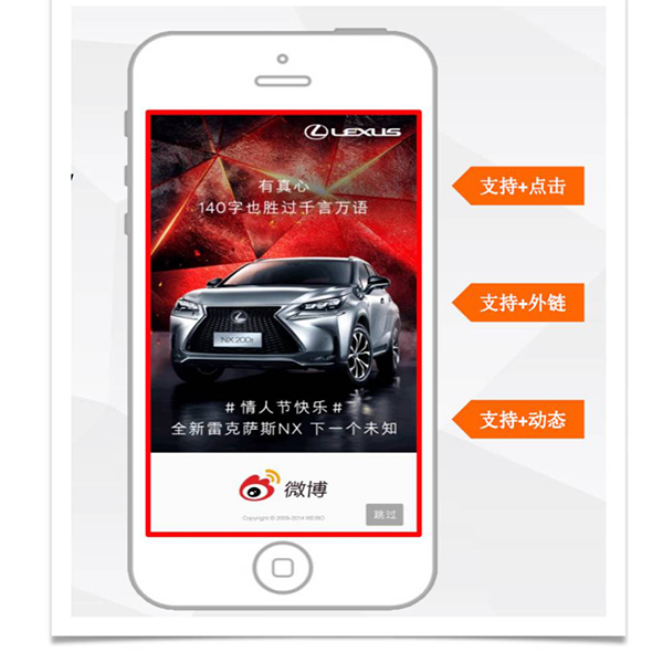 4、微博開屏廣告可以通過點(diǎn)擊屏幕,直接進(jìn)入互動頁面,或者是進(jìn)入你需要的網(wǎng)站頁,一步到位,保證客戶的轉(zhuǎn)化率達(dá)到最高。