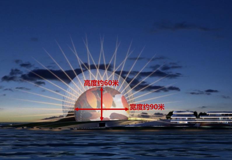 燈光投影項目共包含4面,其中,小貝殼西側(面向情侶路)為投影面,總面積約4000㎡,精度可達4K( 4000×2400px ),可投放視頻、圖片等多種內容;其余3面可播放簡單圖形。