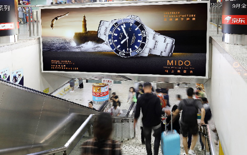 | 創(chuàng)意媒體-南京地鐵三山街站品牌長廊廣告 線路:1號線 組合形式:超級墻貼75㎡+12封燈箱20套裝 媒體費(fèi)(元/52周):550,000 制作方式:寫真噴繪 制作費(fèi)(元/次):42,500 |