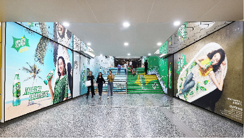 | 創(chuàng)意媒體-南京地鐵集慶門大街站1號品牌通道廣告 線路:2號線 組合形式:1號通道:約196.08㎡墻貼 媒體費(fèi)(元/52周):400,000 制作方式:寫真噴繪 制作費(fèi)(元/次):58,824 |
