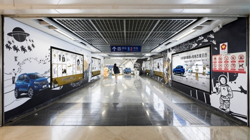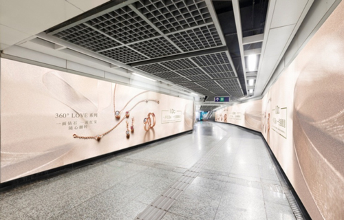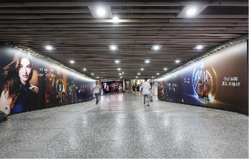 | 創(chuàng)意媒體-南京地鐵新街口站20號品牌通道廣告 線路:1、2號線 組合形式:100㎡頂天立地墻貼 媒體費(fèi)(元/52周):350,000 制作方式:寫真噴繪 制作費(fèi)(元/次):30,000 |