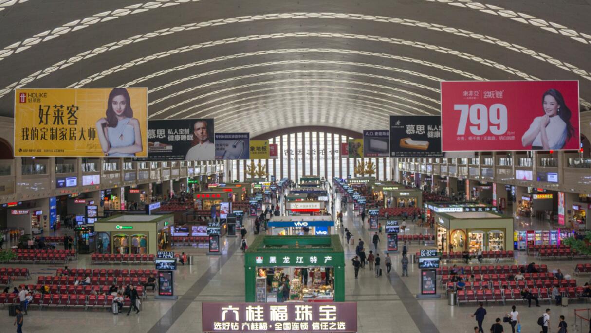| 哈爾濱西站高鐵燈箱廣告 媒體位置:出站通道廣告 媒體形式:墻體燈箱廣告 廣告尺寸(m):5*2.385*1面=11.93 平方 最小投放單位:1塊/組 媒體數量:6 刊例價(萬元/月/組):8 |