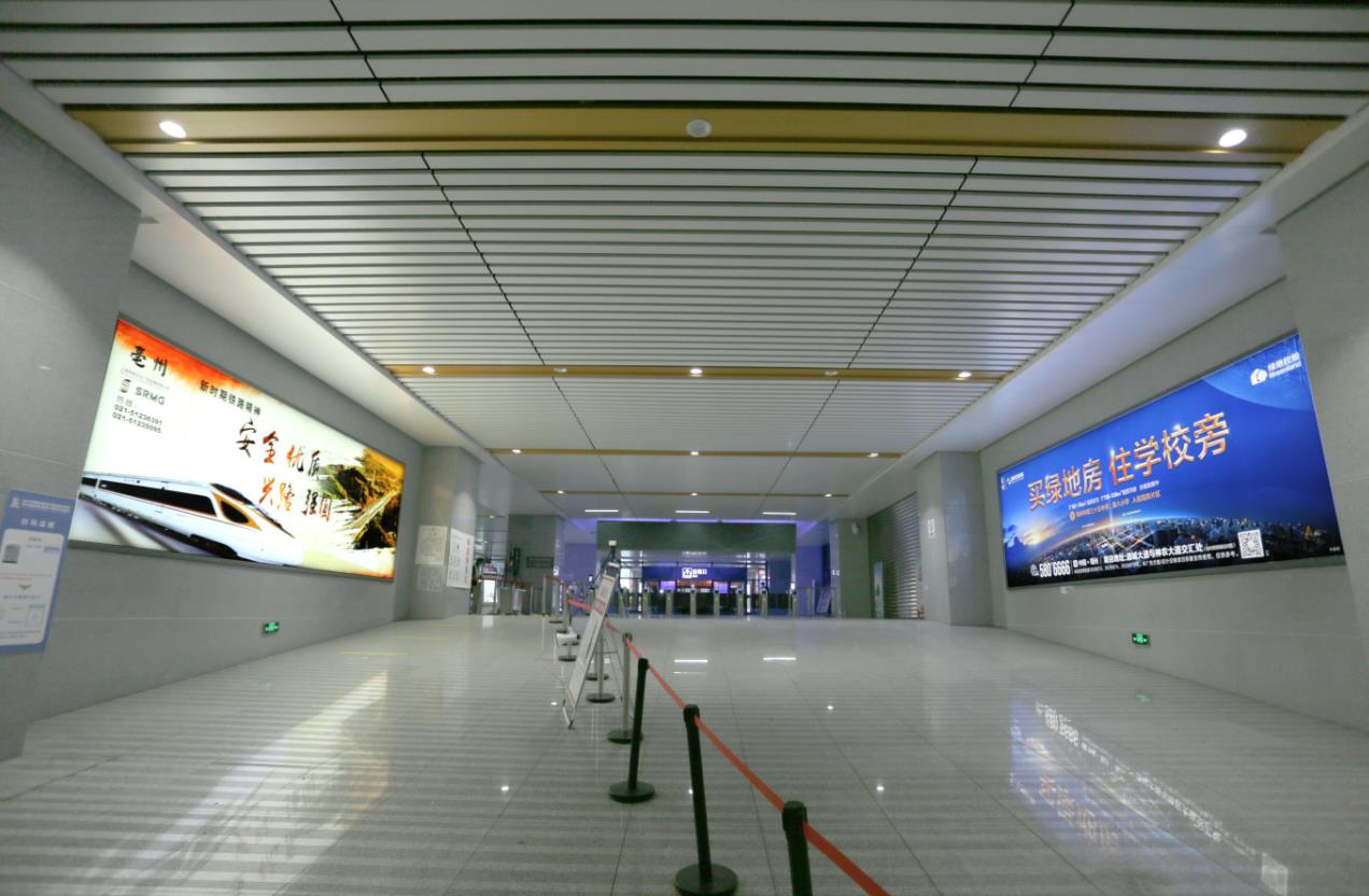 該媒體位于進(jìn)站高架廊橋兩側(cè),是乘客進(jìn)入嘉興南站的第一眼連續(xù)媒體,且是必經(jīng)之路,可謂是通道體系中的黃金廣告位。