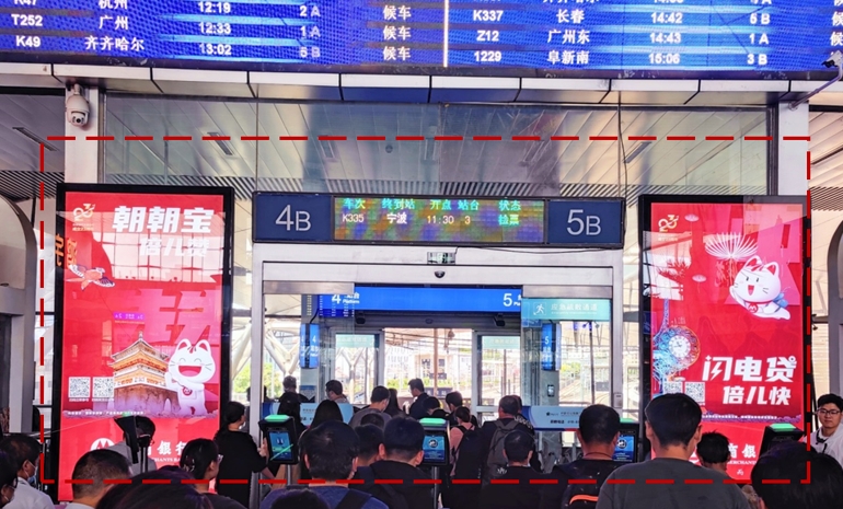 此媒體為候車大廳墻面燈箱,覆蓋所有進站旅客;視野范圍最大的媒體畫面,具有明確的引導消費意義; 觀看距離近、視覺沖擊力強,將企業品牌和產品形象有效送達潛在目標人群。