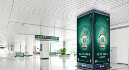 福州長樂機場廣告-長樂機場北斜指廊拐彎處四面包柱燈箱廣告