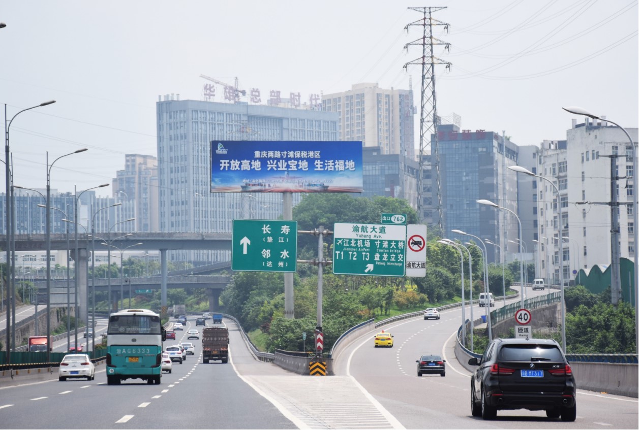 主城東環區域前往機場T3航站樓的必經要道。 同時是渝宜高速公路的一段,是重慶主城通往長壽,涪陵,萬州等長江下游的高速干道。車流量極大,視野開闊,周邊無其他媒體干擾,廣告發布效果明顯。
