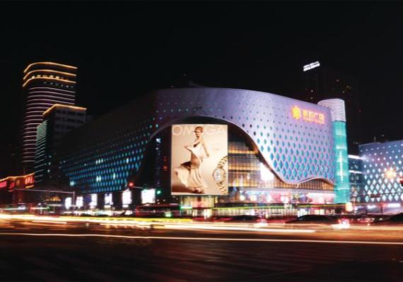 石家莊市中華大街與中山西路交匯處東北角新百?gòu)V場(chǎng)樓體 |