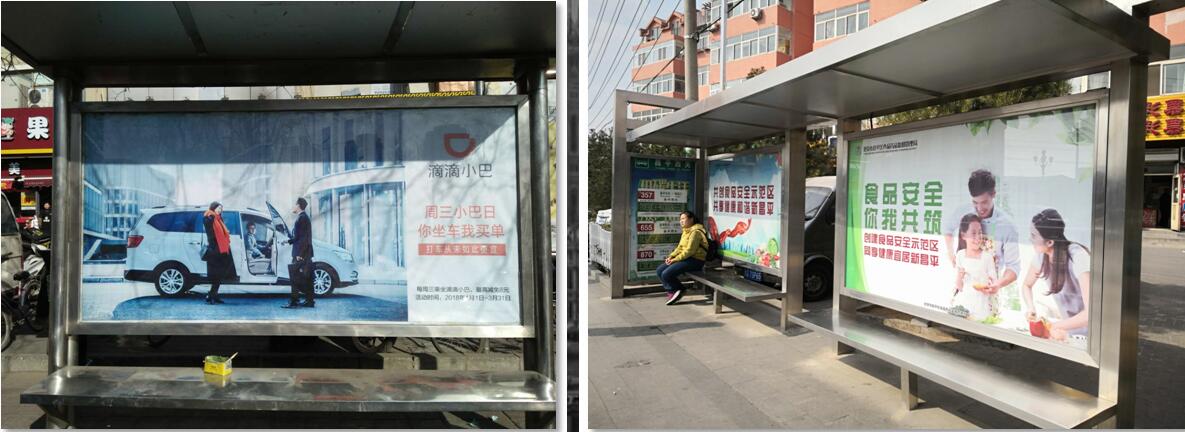 B類候車亭 指不銹鋼材質(zhì)雙廣告位 規(guī)格為0.91x1.65m或1x1.75m等 分布范圍布及整個昌平地區(qū) |