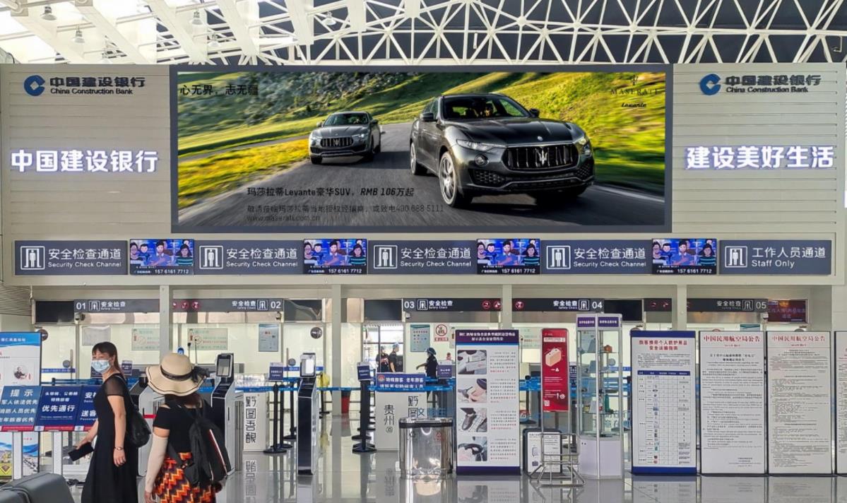 銅仁鳳凰機場出發安檢區led大屏廣告,萬事成傳媒