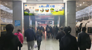 上海高鐵站出站通道懸掛式燈箱廣告