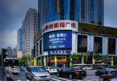 干道:地處繁華的淮海路,是上海中心商業(yè)區(qū)的重要交通路段,且是延安路高架可見最大的LED屏
