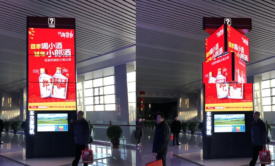 媒體位置:候車大廳中央 廣告尺寸:5.46*1.92*9面