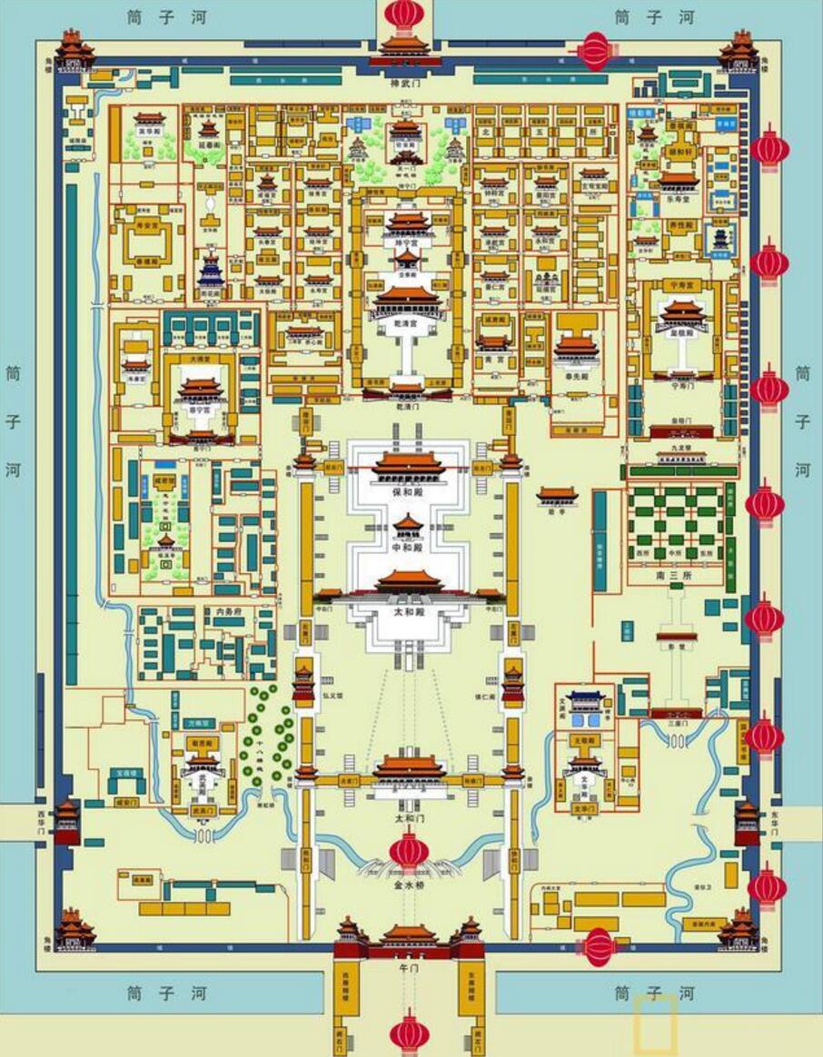 現在流傳最多的,還是午門東西雁翅樓和太和門附近的一小部分景致了,單看這些,恐怕難以盡興。不如重新回到那個“不展芳尊開口笑,如何消得此良辰”的夜晚,順著一路的灰瓦黃磚紅燈籠,在燈火通明中俯瞰紫禁城,于幽光中欣賞《清明上河圖》,沉醉在暢音閣的戲曲聲中。