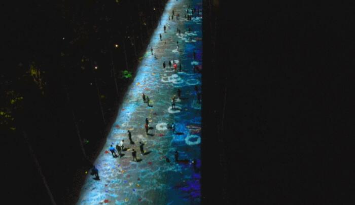 嬉戲江濱、流光彩屏、秘境樹陣、靈動(dòng)淺池、幻影噴泉,每周二、五、六晚19:30、20:30各一場。