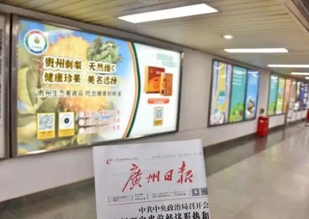 在廣州地鐵1號(hào)線、8號(hào)線兩條黃金線路上,以“貴州刺梨 天然維C 健康珍果美名遠(yuǎn)揚(yáng)”“貴州生態(tài)美食品 吃出健康好味道”為宣傳主題的地鐵廣告正式上線。