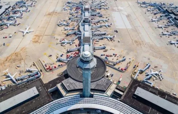美國芝加哥奧黑爾國際機場,是世界上目前最大的飛機場之一,擁有多條跑道和一個龐大的候機樓,是美國聯(lián)合航空公司等主要航空公司的基地之一。
