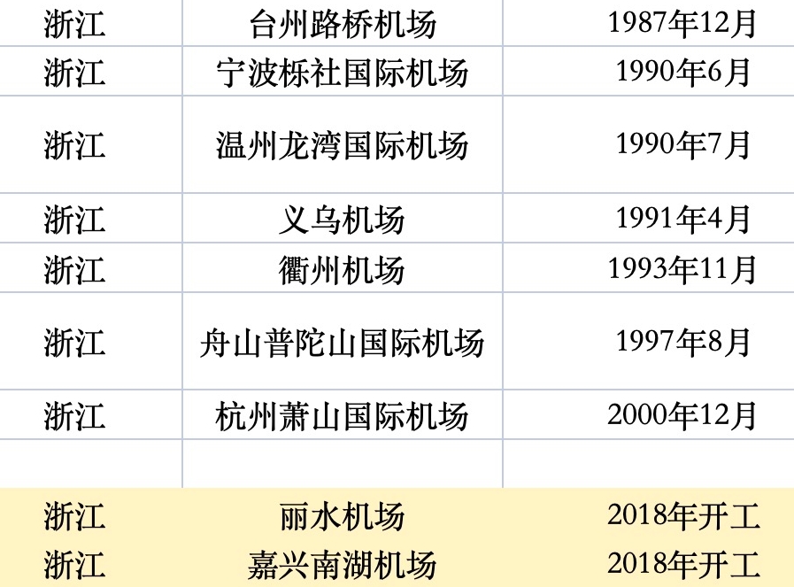 浙江已有和在建的民用運輸機場(制表:時代周報王晨婷)