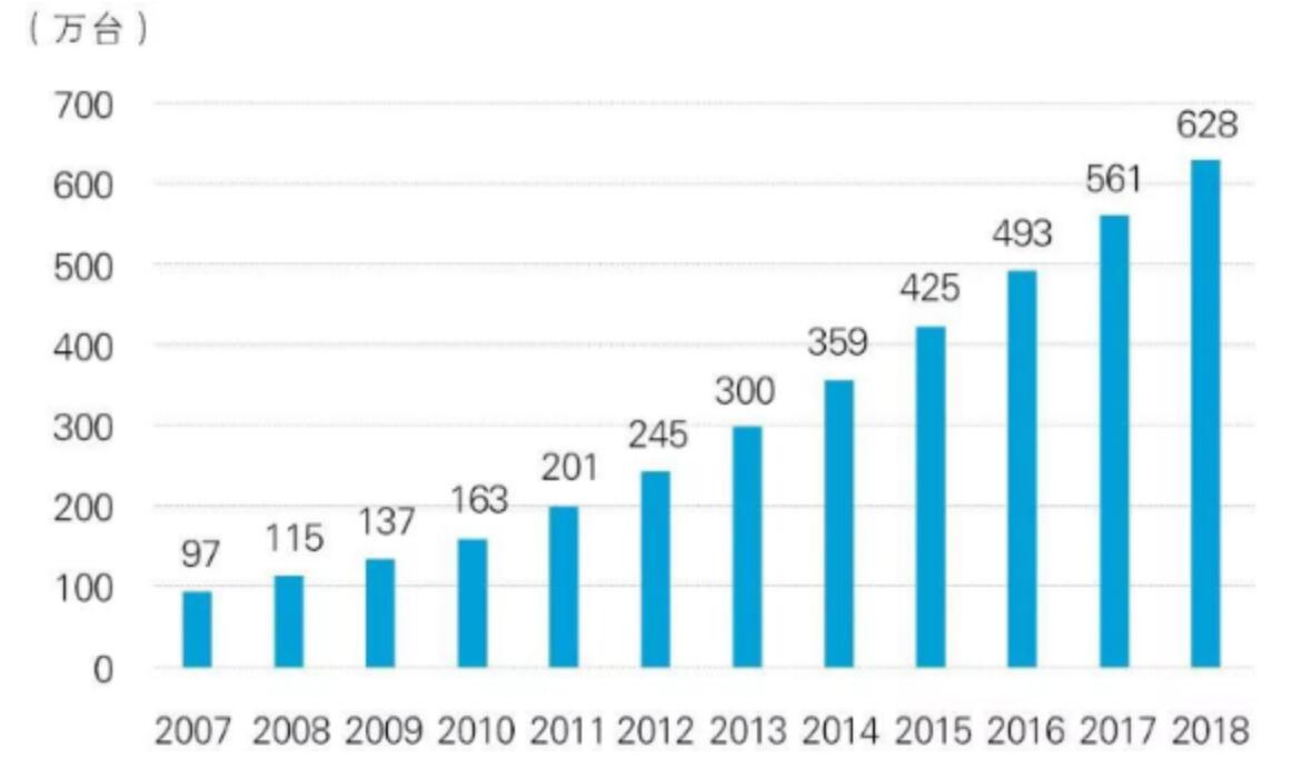 說到電梯廣告,首先就不得不談到中國的電梯行業。根據中國電梯協會的統計數據,中國電梯的年產量2018年已經達到80.7萬臺,增長始終保持強勁勢頭。中國已經成為全世界最大的電梯市場。